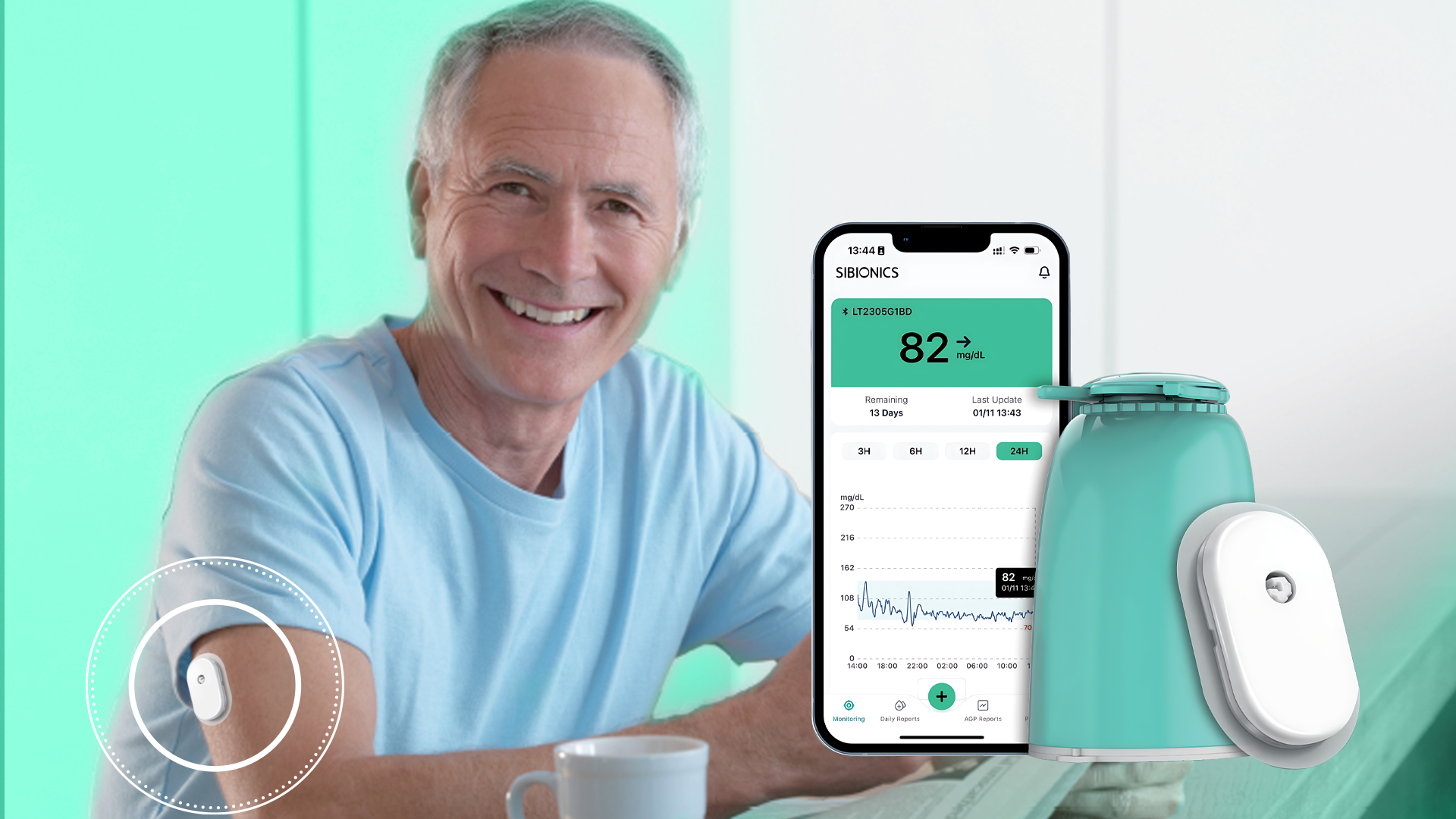 هر سنسور قند سایبایونیکس تا ۱۴ روز پس از نصب قابل استفاده است. اپلیکیشن SIBIONICS، ۲۴ ساعت پیش از اتمام این مدت، به شما هشدار میدهد تا برای تعویض سنسور آماده شوید.